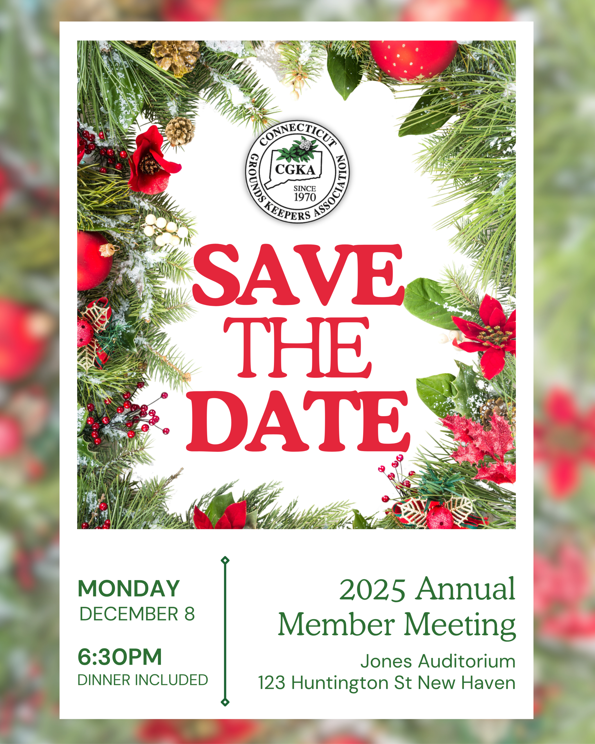 Events GET IN TOUCH +1 203-699-9912 Monday December 8th 6:30pm Annual Member Meeting Jones Auditorium 123 Huntington St New Haven CT Save my Spot! Tuesday February 17th Annual Conference Aqua Turf Plantsville CT Save My Spot!